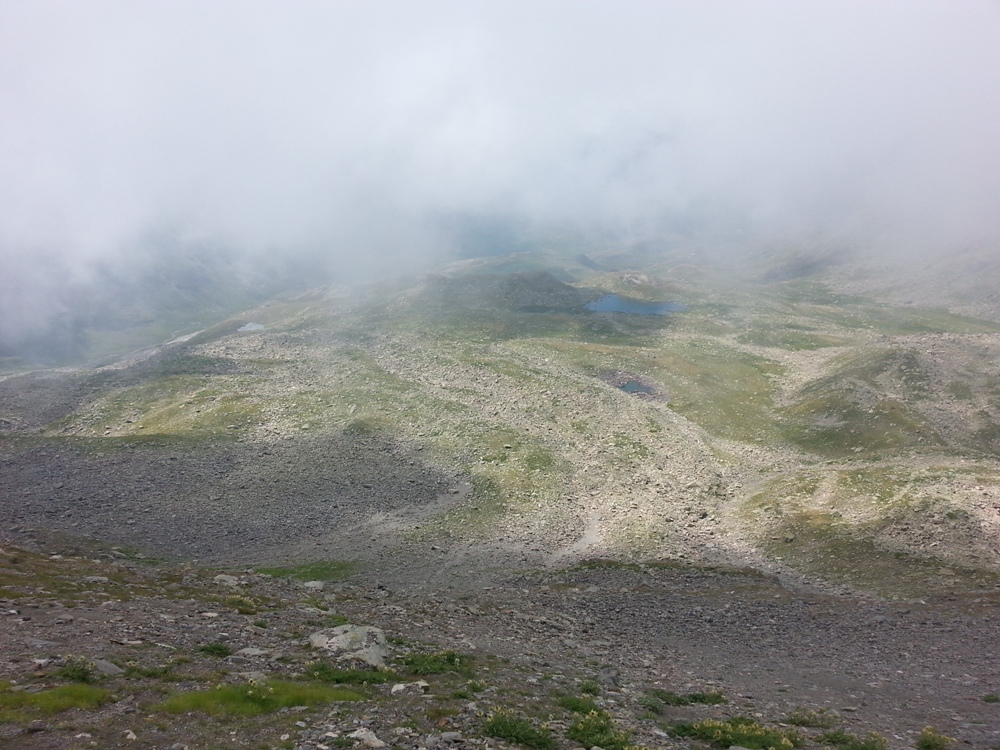 Pendant ma descente, d'épais nuages sont passés, m'empâchant de voir ou j'allais. Ce versant très caillouteux et pentu