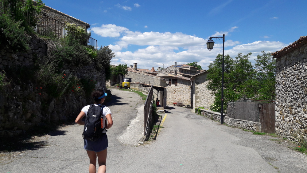 d'Oppedette. On commence par arriver devant la mairie, puis on suit la rue qui repart en arrière sur la