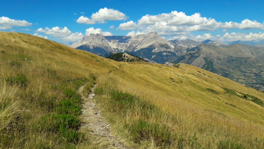 l'herbe.Vue sur le Pic de Céüse (en haut à gauche de la photo), juste avant d'arriver au col de la photo