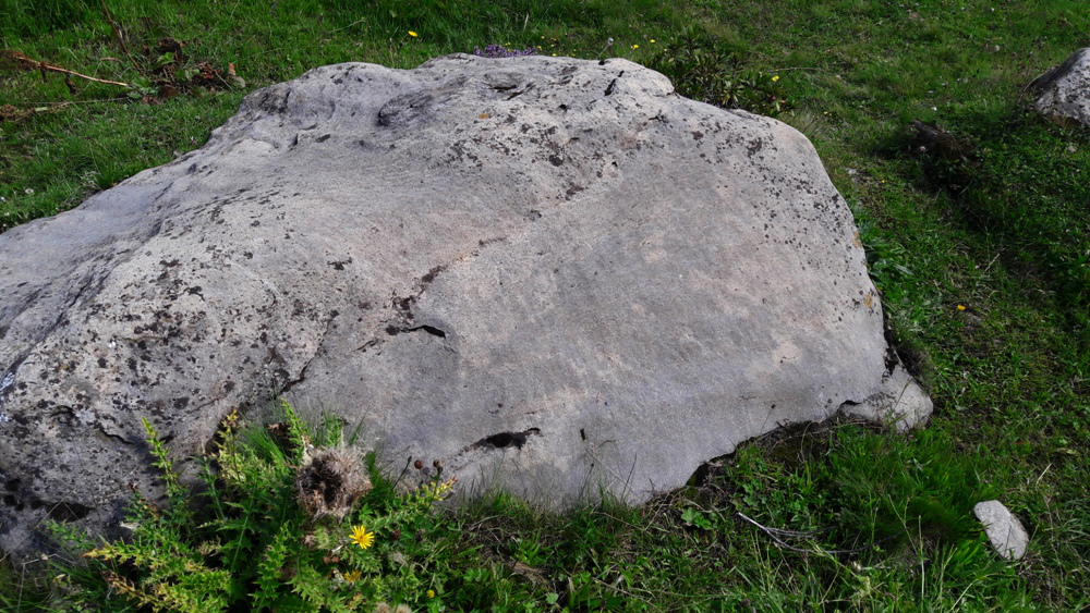 L'une des pierres gravées, au Lac de l'Arcelle.