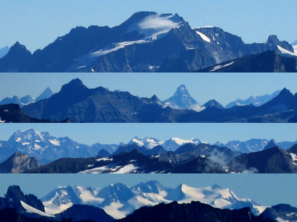 On commence en direction du Nord-Est, avec tous les 4000 mythiques des Alpes Suisses et