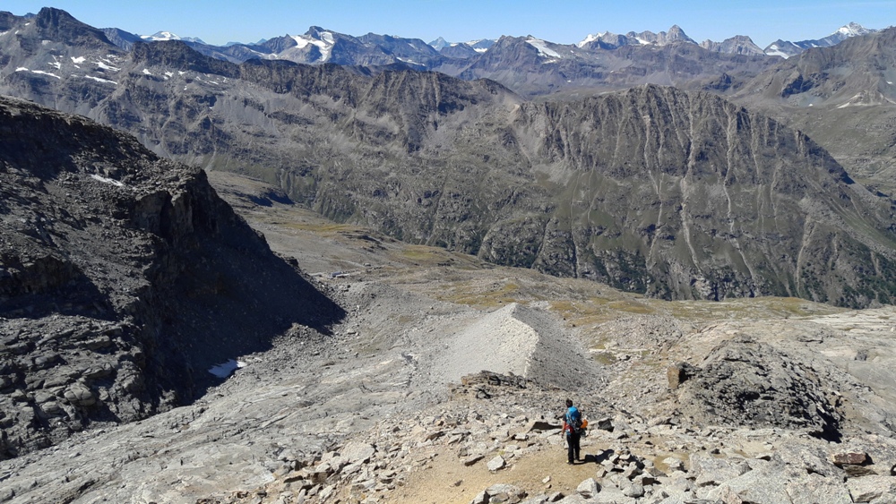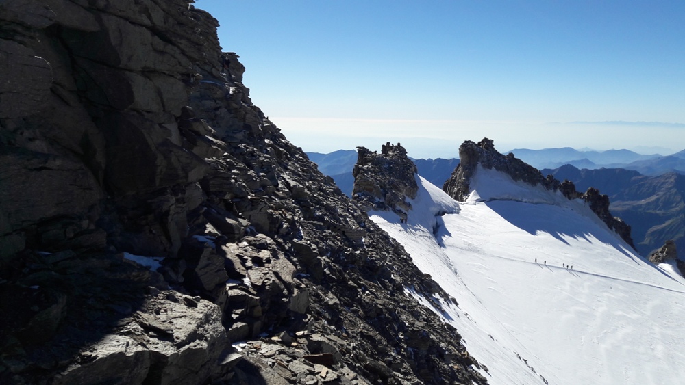 Une fois de retour sur la voie normale, il suffit de redescendre le Glacier de la Schiena d'Asino puis le