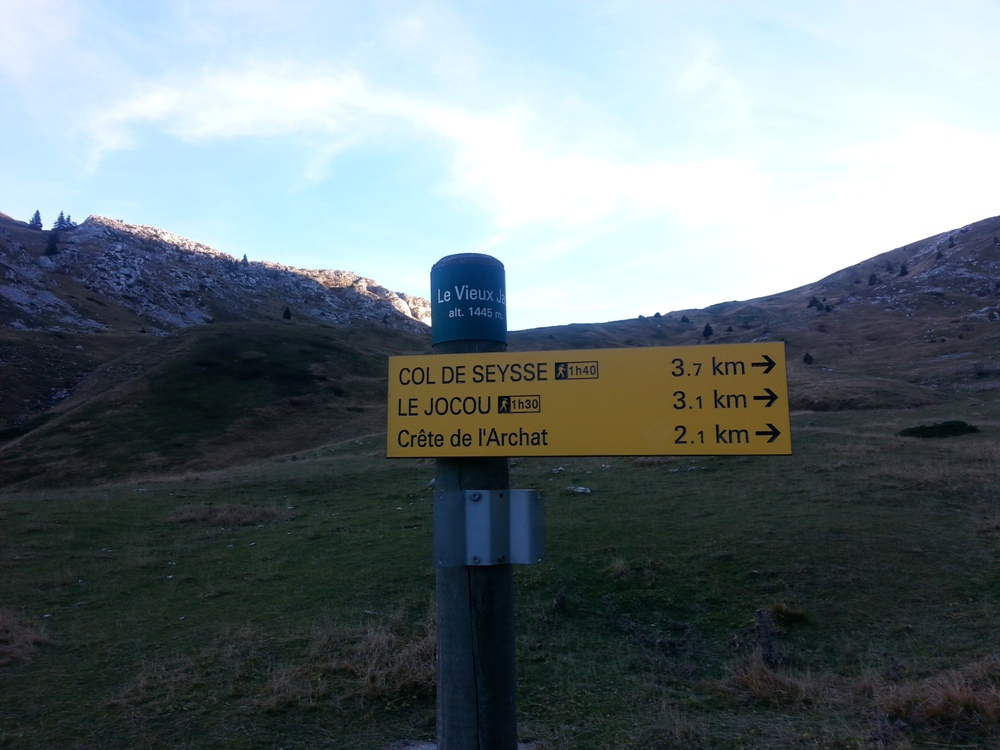 à droite on voit le Grand Ferrand (2758 m).Le panneau au niveau du carrefour sur la Crête de l'Archat.