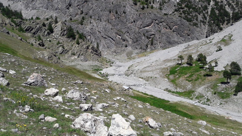 Une fois de retour au Col du Chaberton, on redescend dans le Vallon des Baisses, on retraverse le Rio Secco,