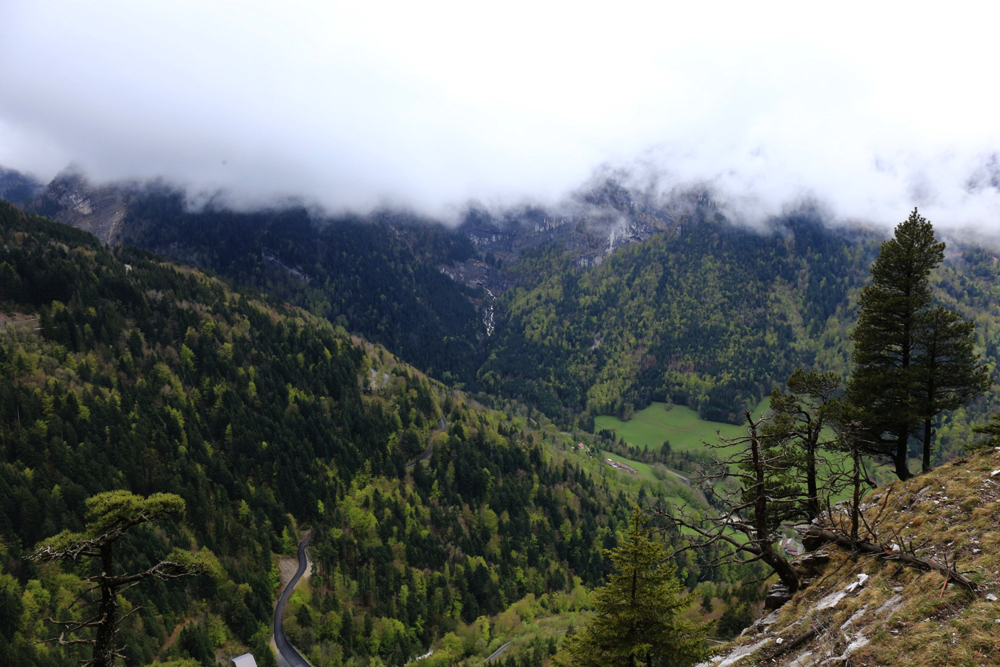 Depuis le Belvédère du Pas du Roc, on a une belle vue sur la vallée de Paccot qui s'étend à nos pied, avec