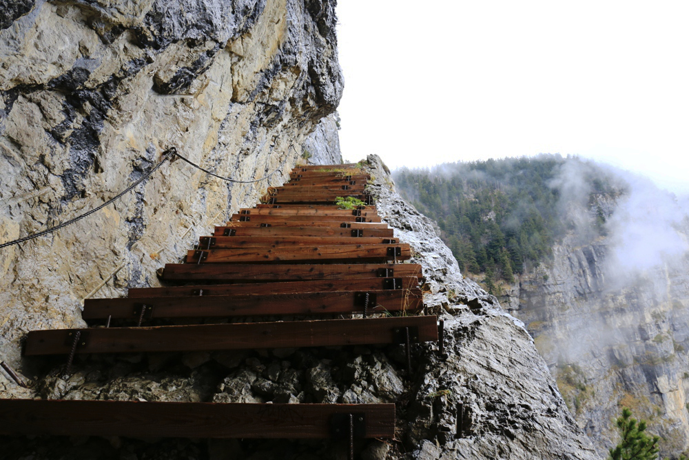 le mythique chemin aérien du Pas du Roc, pour arriver en haut de la cascade, au Belvédère du Pas du Roc.