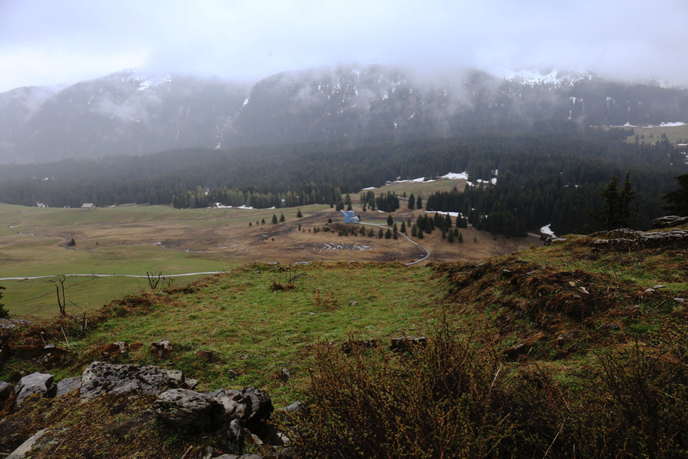 Le plateau de Champlaitier, vu depuis le Chalet du Plan. La Passerelle des Brassets est juste à