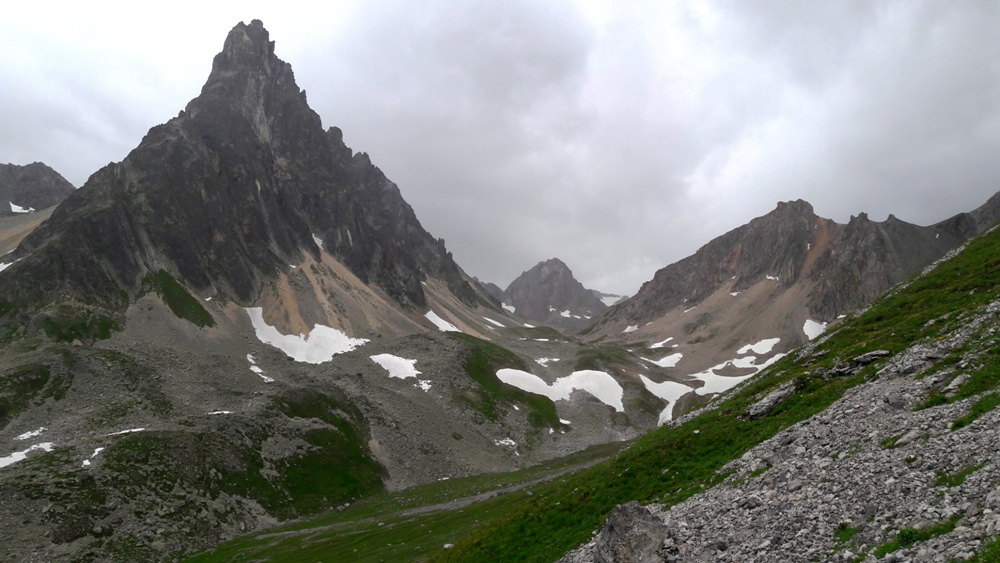 la redescente dans la Vallée de l'Aiguille Noire.En vue du Rateau Vieux (au centre de l'image), avant la portion descendante.