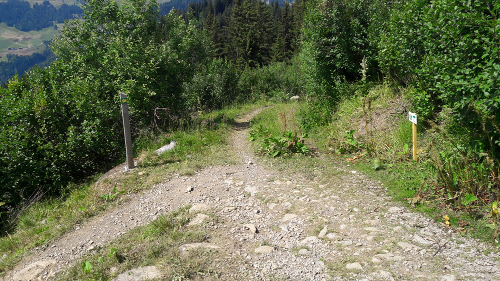 Le carrefour à côté du Refuge de Bombardellaz, où il faut prendre à gauche (le refuge est