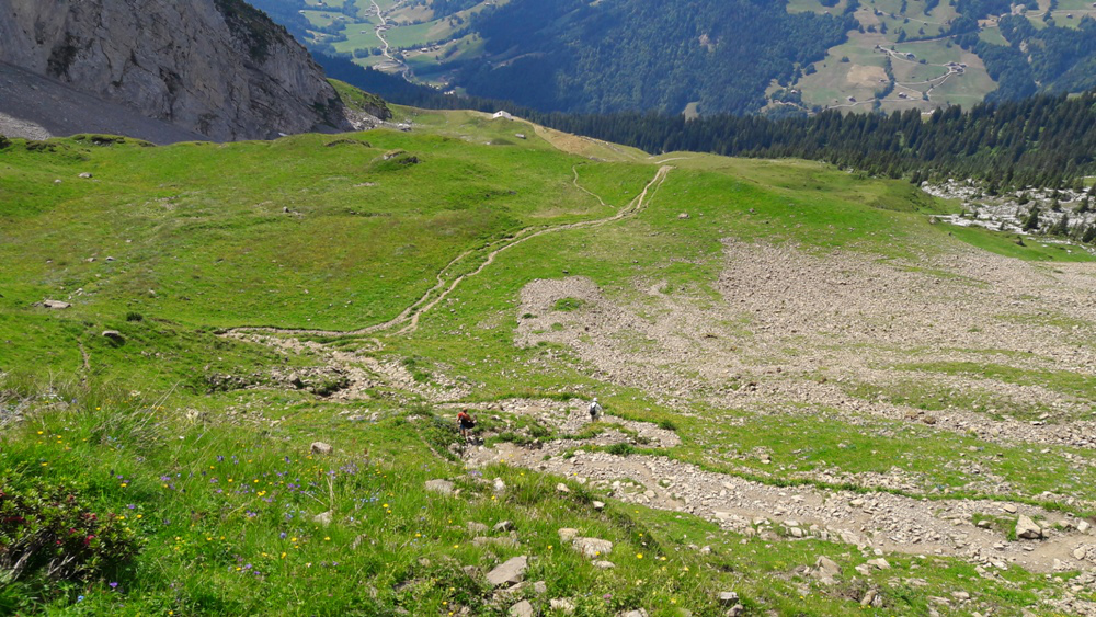 Le chemin redescend en direction du Refuge de Bombardellaz. Vers 1600 m, non loin de ce dernier,
