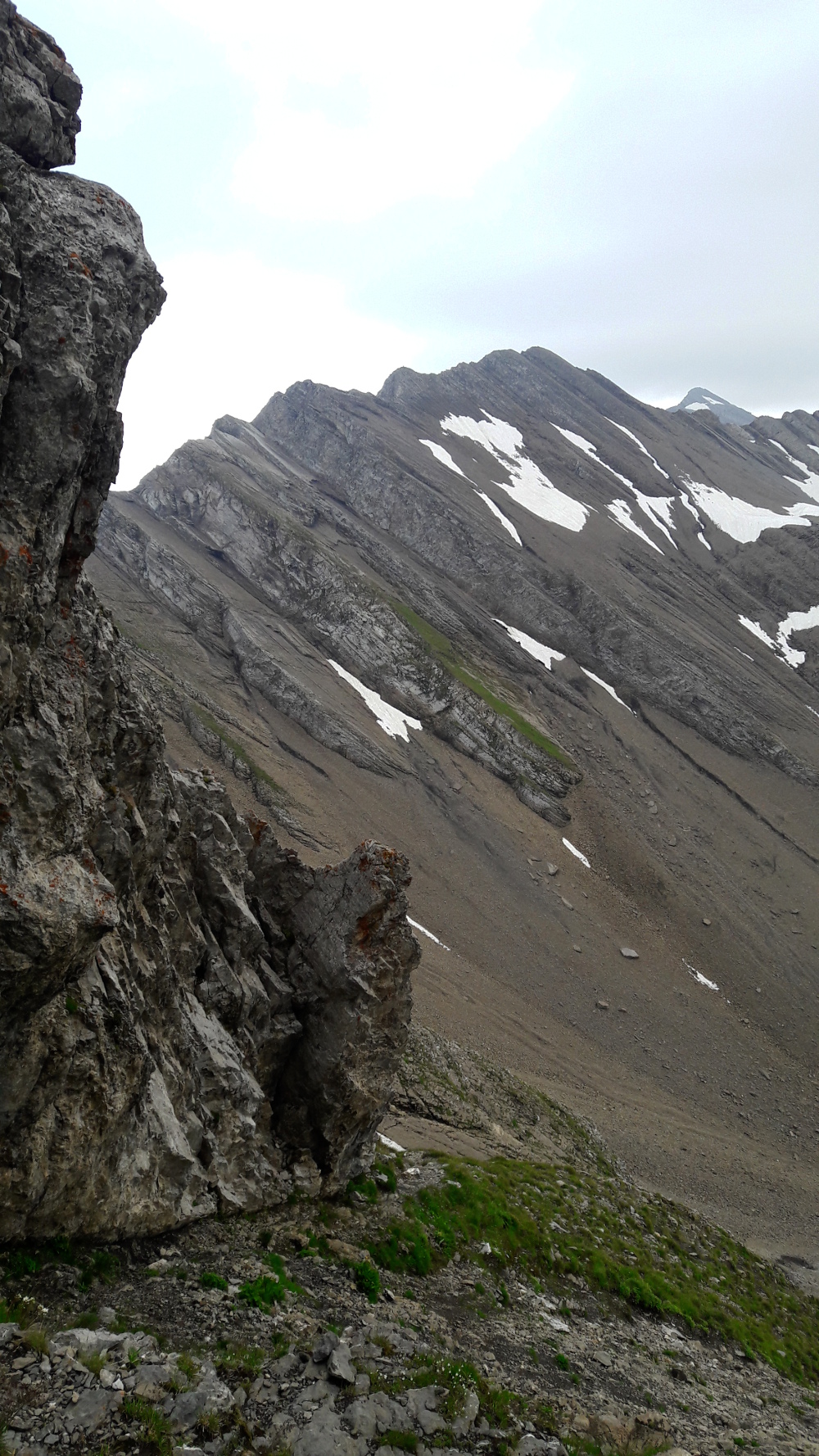 l'aller : on redescend le sommet puis on retraverse le versant pentu jusqu'à la paroi qui nous masque le
