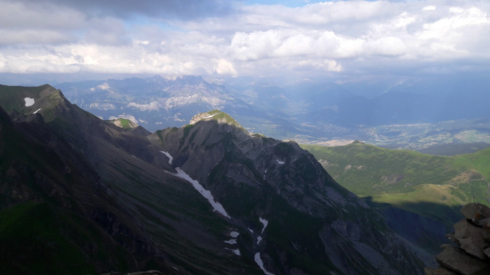 la Tête Pelouse à droite, que l'on a déjà vu au début du tour d'horizon.Cette photo sert simplement à montrer le vide du côté Est de la Roche Perfia.Enfin, quelques zooms sur les sommets des photos précédentes. Sur la première ligne, on a