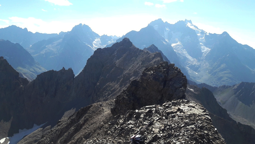 droite et le Pic Ouest de Combeynot sur notre gauche. Entre les deux, le point le plus bas de l'arête